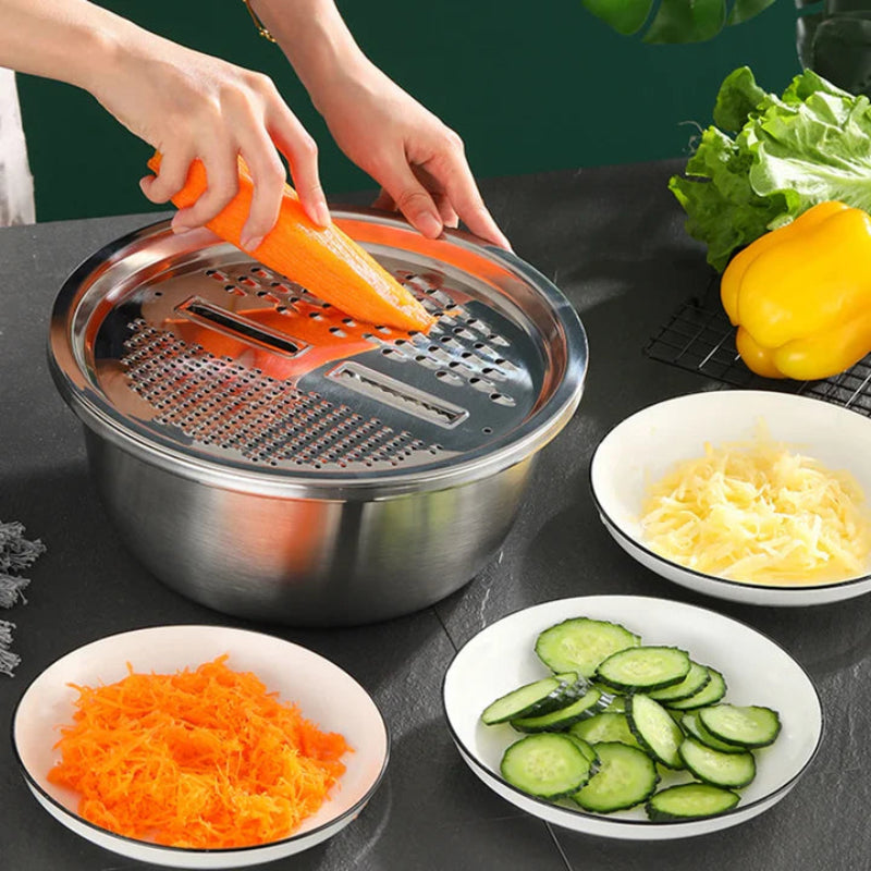 Ano, řezací čepele se snadno mění podle požadovaného typu řezu: strouhat, krájet, julienne.