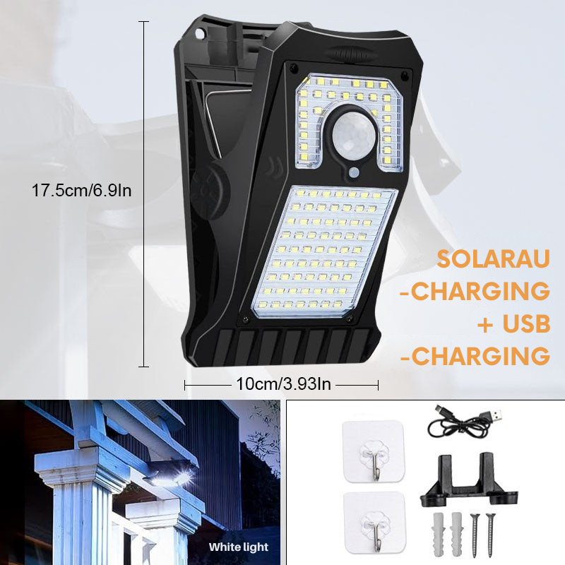 Befestigen Sie sie an dem gewünschten Ort und stellen Sie sicher, dass das Solarpanel direkter Sonneneinstrahlung ausgesetzt ist, um eine optimale Aufladung zu gewährleisten.