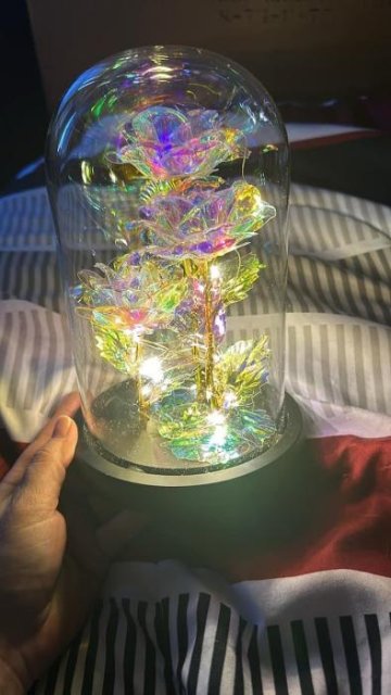 Dankzij de presentatie onder een stolp, het feeërieke licht en de parelmoer glans, creëert deze Roze een onmiddellijke “wauw”-effect voor alle speciale gelegenheden.