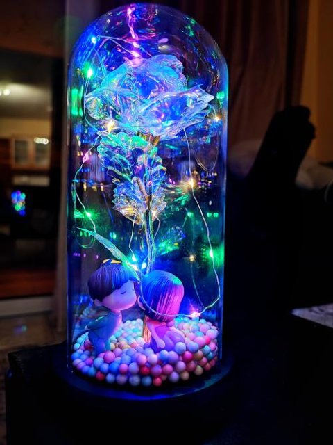 De glazen bel en de LED's geven een zeer romantische sfeer. Ik raad het aan.